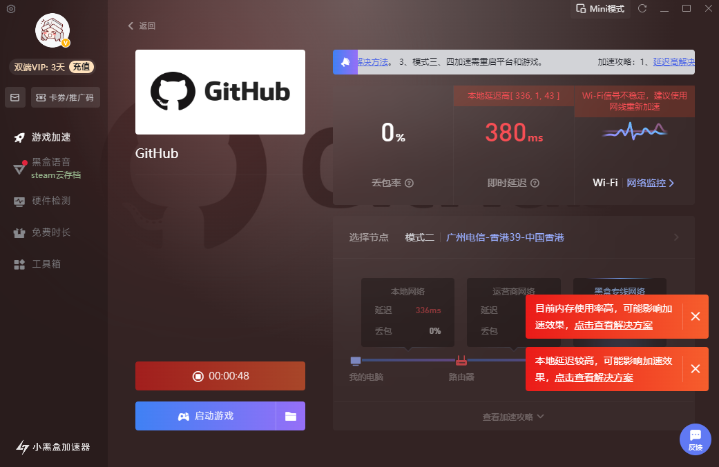 没想到我经常用来加速 steam 的小黑盒加速器居然还可以加速 github !